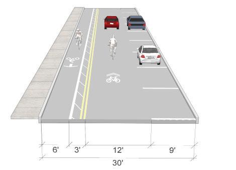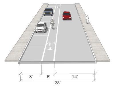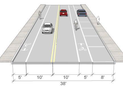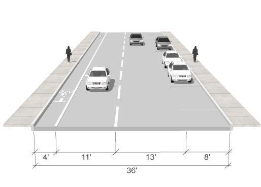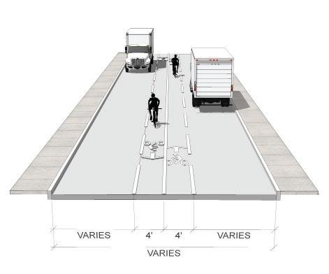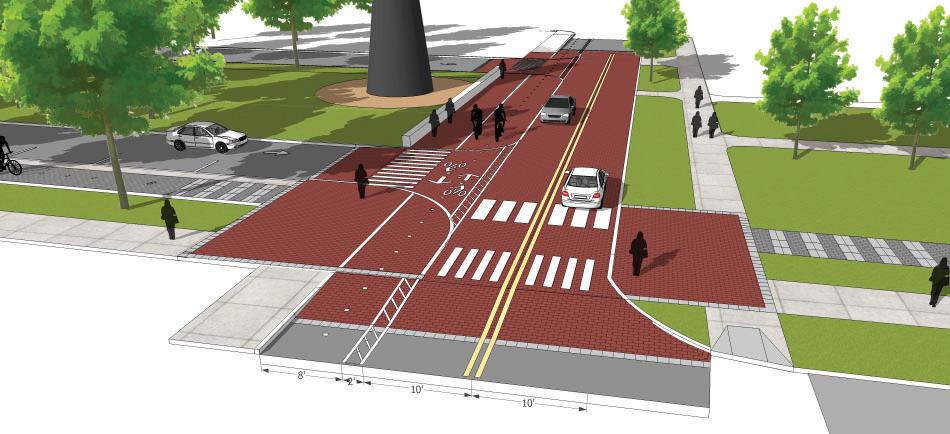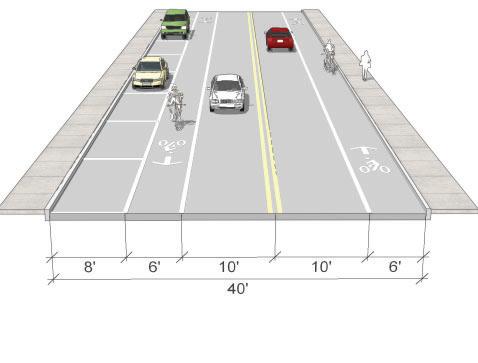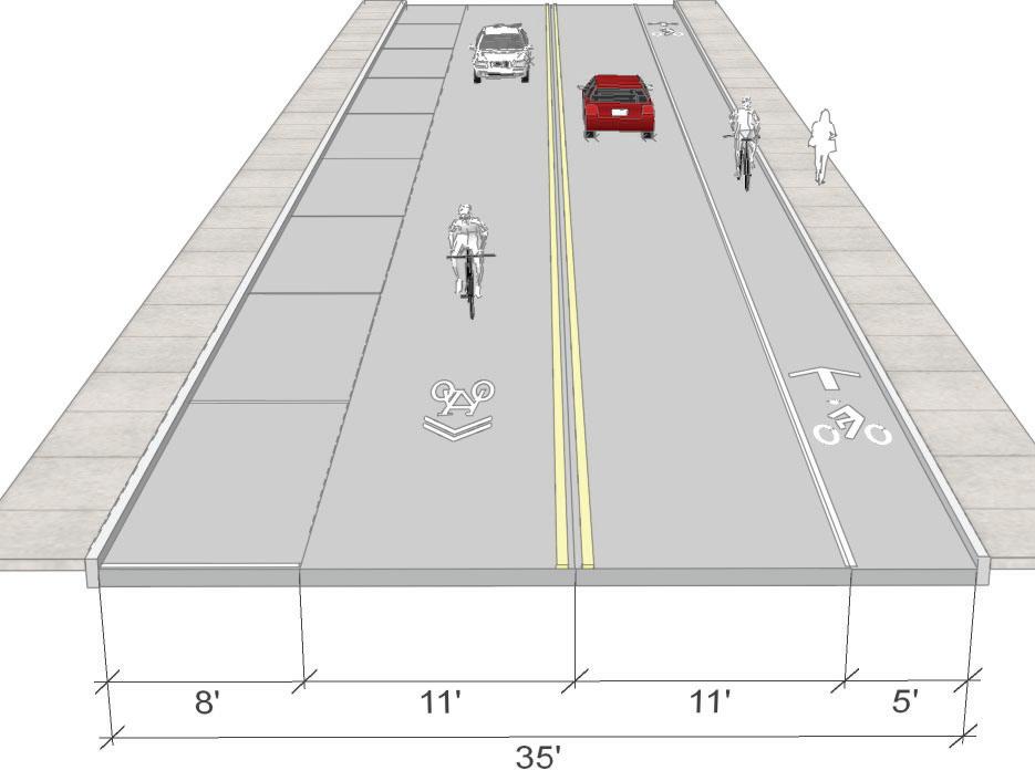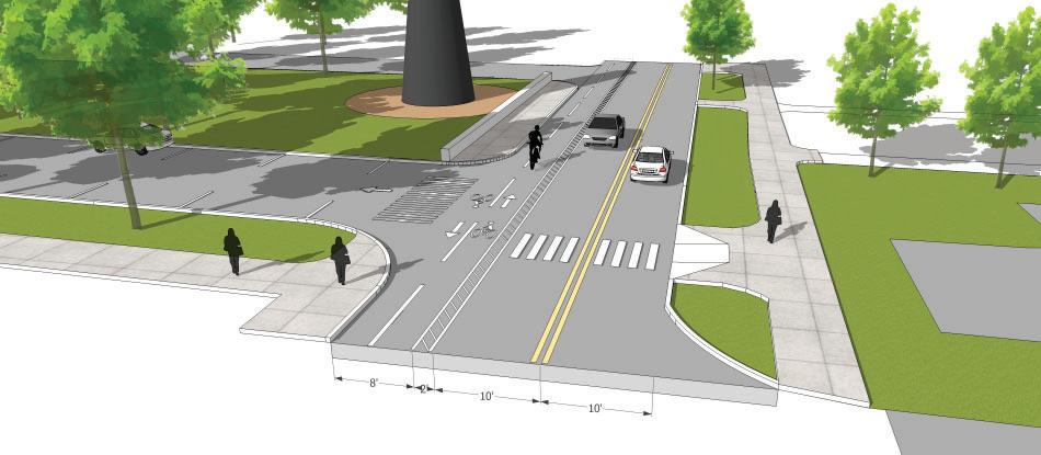 • Bike lanes are currently proposed on 3rd St. (parking would need to be removed on the north side of the street), see page 53. The 3rd St. shared-use path should still be considered even if bike lanes are added to 3rd St. The shared-use path would provide a safe space for pedestrians and those cyclists who do not feel comfortable riding on the street.