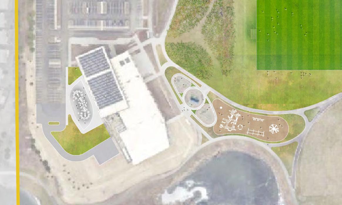 Widen concrete sidewalk surrounding playground area (min. 5’ width)