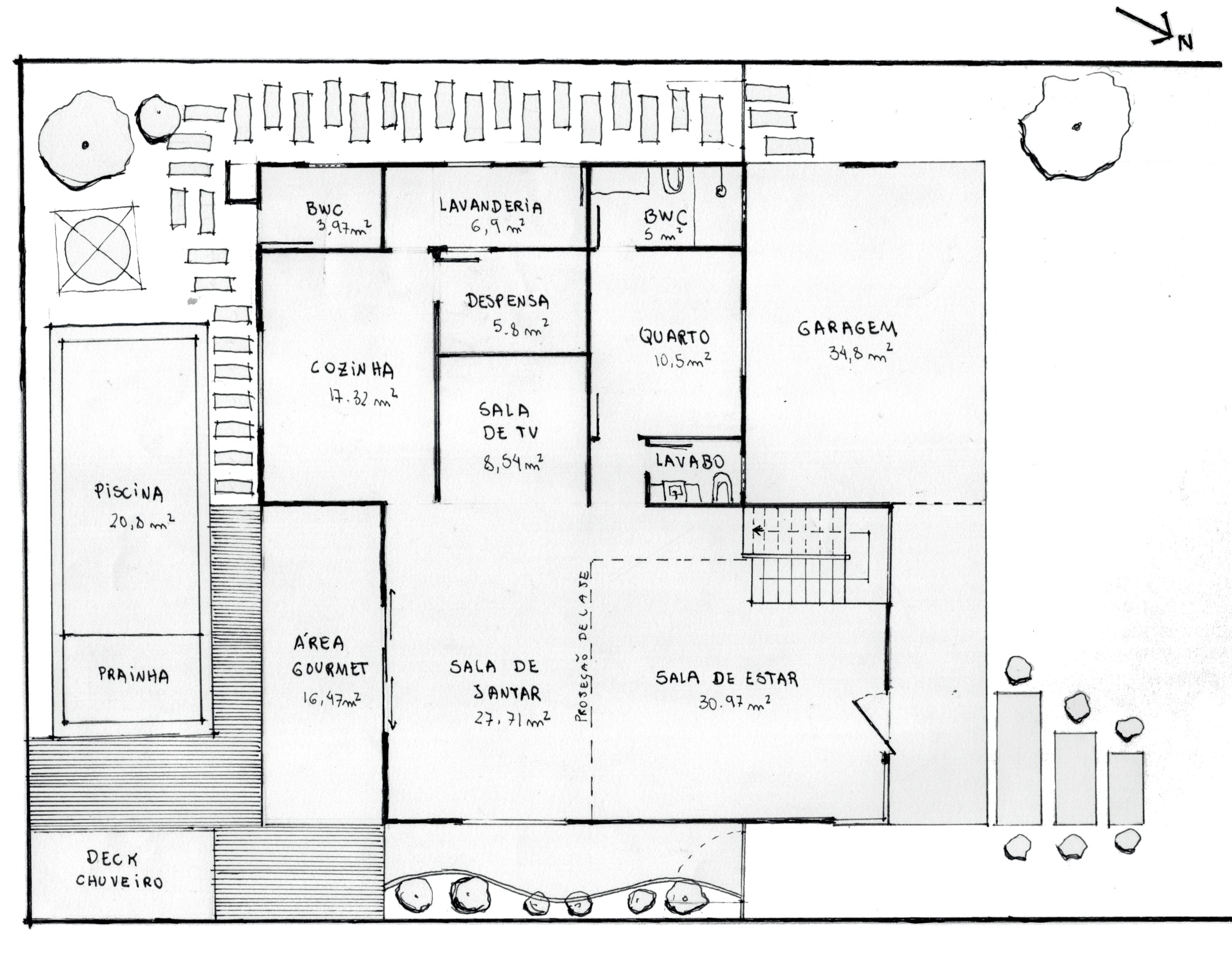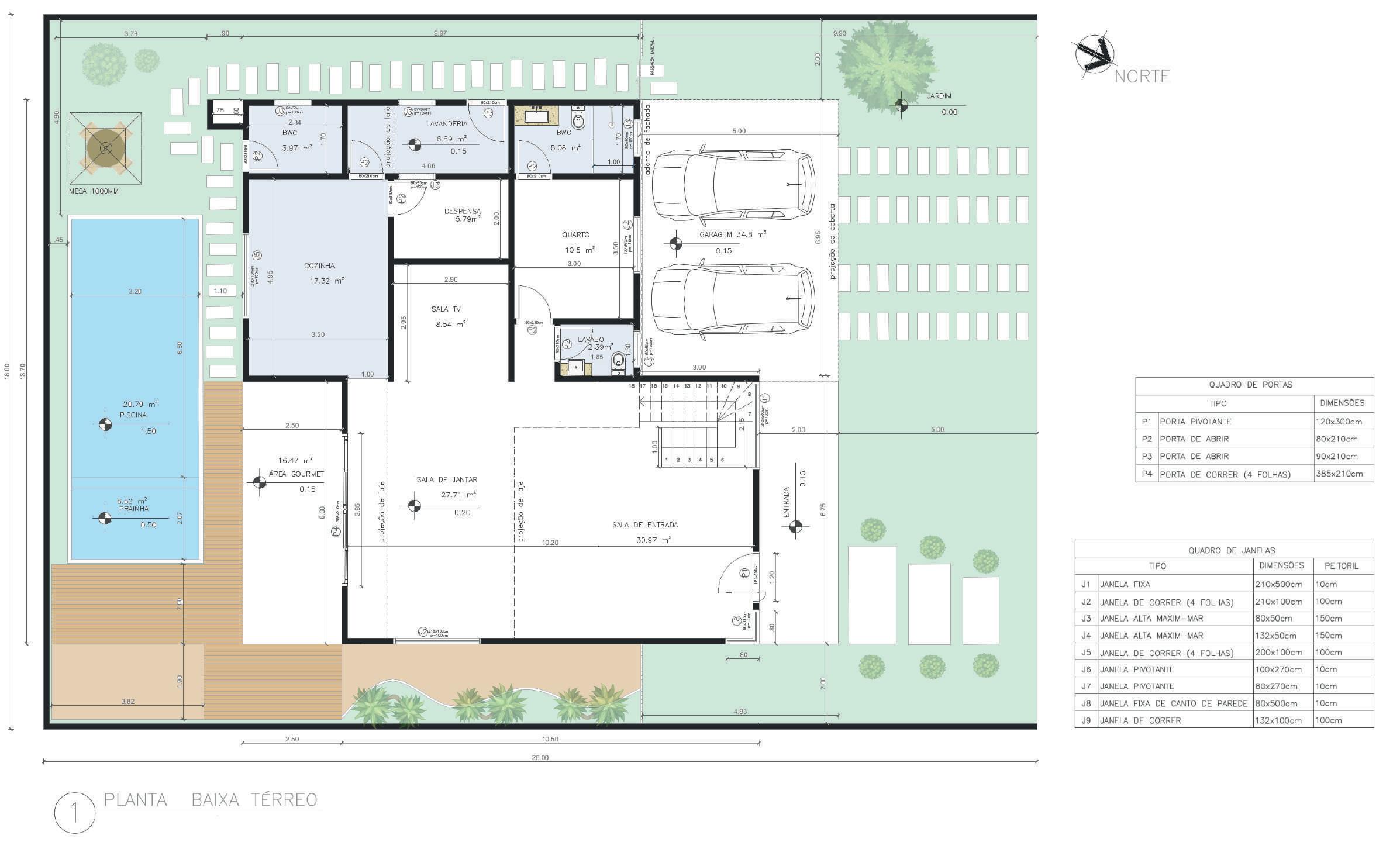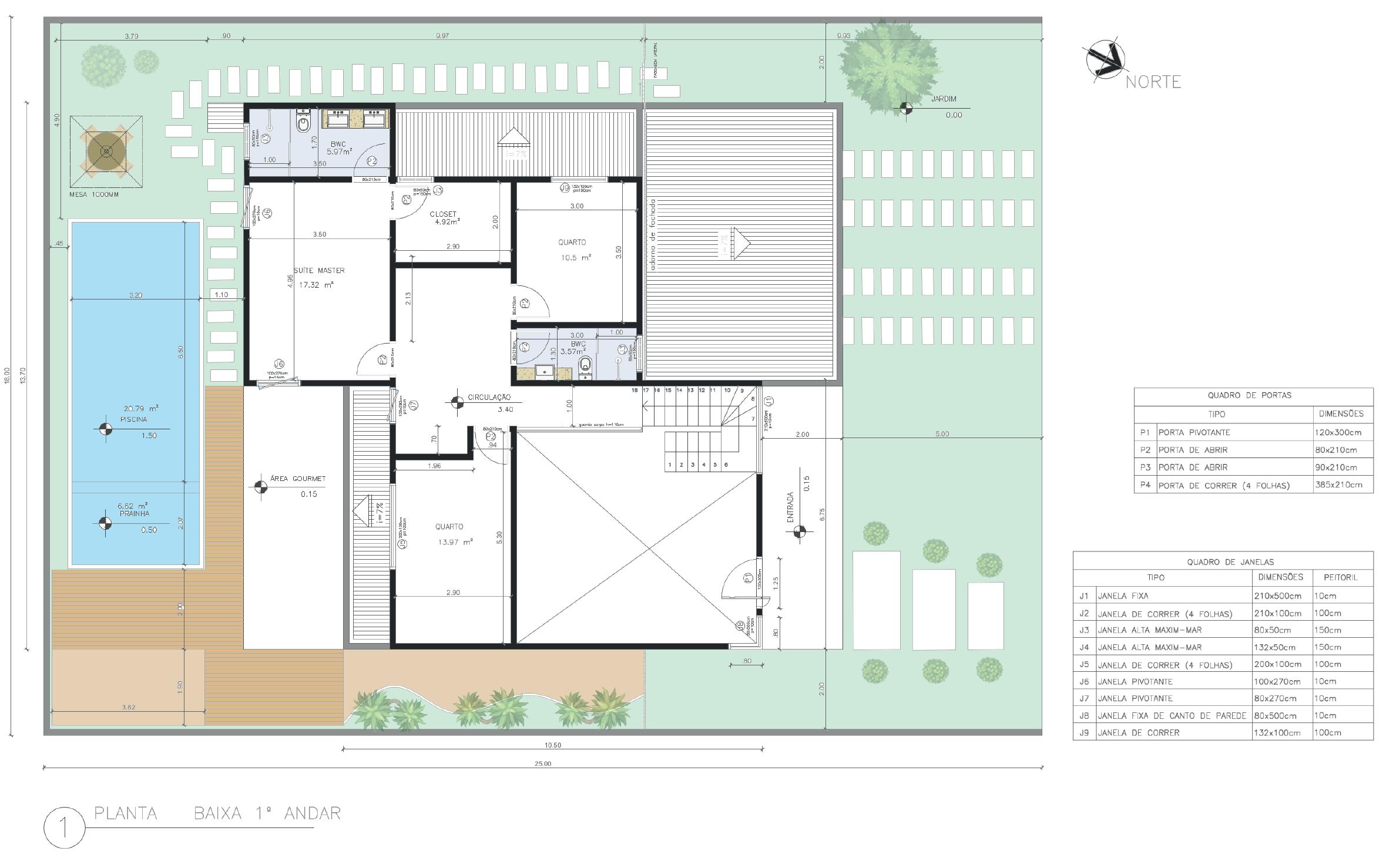 Materiais produzidos: Esquemas e Plantas de Estudo preliminar; Plantas, cortes e fachadas de Projeto Anteprojeto; Detalhamento de BWC Social e Suíte;