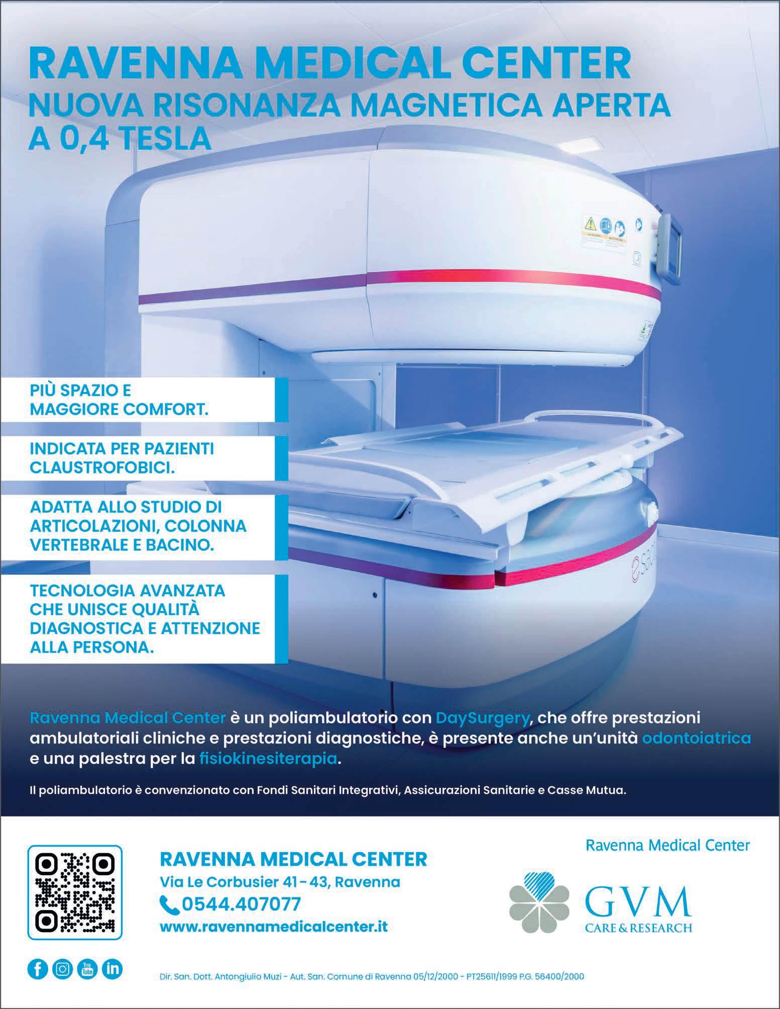 Ravenna Medical Center, Day-Surgery con poliambulatorio privato di Gvm Care & Research, ha recentemente installato la nuova Risonanza Magnetica Magnifico Open, un tomografo di ultima generazione a magnete aperto, prodotto dall’azienda italiana Esaote. La precedente apparecchiatura presente in struttura aveva un campo magnetico da 0.24 Tesla, mentre la nuova raggiunge 0.4 Tesla, collocandosi tra i sistemi open di gamma più alta, che si traduce in esami e immagini più accurati.