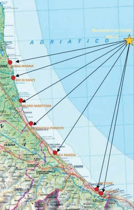 A in erire sull’erosione ci sono anche dei fattori locali. Nel ravennate l’avanzamento del mare è favorito dalla subsidenza del suolo, che secondo Arpae si abbassa di 3-4 millimetri all’anno per cause naturali. Il fenomeno è più accentuato in prossimità delle aree di estrazione del metano, come per esempio a Lido di Dante dove c’è la piattaforma Angela Angelina di Eni: qui la subsidenza arriva a 7-8 millimetri annui. In ne l’erosione può essere aggravata dai moli dei porti che trattengono la sabbia portata dalle correnti, provocando l’arretramento delle spiagge situate sotto le dighe foranee, e dalla mancanza delle dune naturali che sono state abbattute tra gli anni ’50 e ’80 per fare posto agli stabilimenti balneari e agli altri edi ci turistici sul mare. Le dune, coperte dalla vegetazione, erano una solida barriera contro le mareggiate e una ricca riserva di sabbia. La loro assenza favorisce l’avanzamento del mare, che tra Comacchio e Ravenna sta procedendo a una velocità stimata dalla Prefettura in 10-12 metri all’anno.