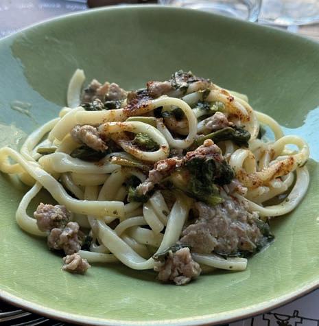 fra paste al mattarello (o al torchio), ripiene o variamente condite/servite (in brodo o al ragù, con ortaggi o latticini); sei le pietanze prevalentemente di carne... D’altra parte, come ogni trattoria che si rispetti, sono una decina le proposte del giorno “fuori menù” secondo l’estro dal cuoco (anche sulla base delle materie prime di stagione e disponibili sul mercato), comprese alcune dolcezze ne pasto.