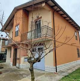 Villetta su due livelli abbinata su un lato Bellissima villetta su 2 livelli, ristrutturata. P. T.: soggiorno, bagno con vasca, cucina abit. 1° P.: bagno con doccia, 2 camere da letto matrimoniali. In corpo staccato posto auto scoperto, cantina, garage soppalcato e nestrato, attualmente utilizzato come taverna e spazio ospiti, può essere trasformato appartamento secondario. In ssi in legno con doppi vetri, zanzariere, riscald. a radiatori e A/C. Parzialmente arredata.