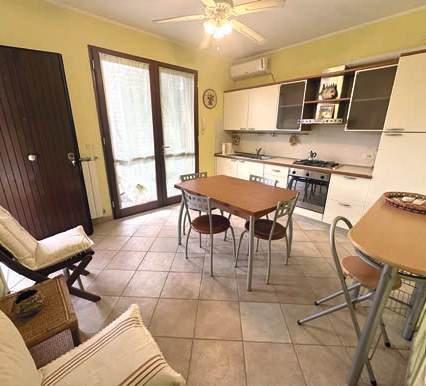 Appartamento al piano terra in piccolo contesto condominiale di soli 12 unita’ ed a 150 metri dal mare; composto da ingresso su zona giorno/ pranzo, cucina separata nestrata, bagno con box doccia, camera matrimoniale e camera singola. Doppi in ssi e inferiate in tutte le nestre; cantina ad uso comune e posto auto. Basse spese condominiali. Si vende arredato. Sperse condominiali circa 450 € l’anno. Certi cazione energetica in fase di elaborazione