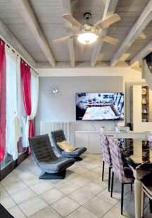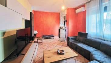 Ristrutturato 2017, appartamento con ampi servizi. Ingresso comune con altra unità sul fronte strada, al P. T.: garage con accesso privato, centrale termica, caldaia a condensazione nuova, cantina, taverna con cucina a vista, stufa a pellet che scalda anche l’appartamento, stanza pranzo/soggiorno, bagno con doccia. L’appartamento, tutto al P. P.: ingresso, soggiorno grande con angolo cottura, bagno con doccia, 2 camere da letto. Impianti nuovi e certi cati, climatizzazione con pompe di calore, in ssi: esterni in alluminio con alette regolabili, interni in alluminio a taglio termico con doppio vetro isolato acusticamente, zanzariere, portone blindato, cappotto. Ceduto arredato, con split, motori dell’aria condizionata e stufa a pellet, compresi. RICHIESTA: € 148.000