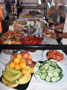 In al die jaren zijn er natuurlijk ook tradities ontstaan tijdens het Dijkerhoeksfeest. Zo neemt Mirjam (nog steeds) elk jaar bakken snoep mee voor het personeel, zodat er altijd wat te ‘snaaien’ is. “Wat een geld zal dat gekost hebben”, zegt Gerrit lachend. Miranda en Mirjam rookten altijd samen op zondagmiddag een sigaretje om het Dijkerhoeksfeest te evalueren en af te sluiten. En Fenny haalde altijd ruimschoots broodjes voor het personeel, waarmee ze dan tijdens de pauze van de revue rondging. “Want het personeel moet niet verhongeren”, aldus Fenny. Ria (voorheen Marietje) maakte op zondagavond altijd een heerlijk (andijvie)stamppotbuffet (en ja, dat midden in de zomer). Het personeel en de feestcommissie smulden hier heerlijk van. Een goede bodem is belangrijk! Tijdens dit buffet kwamen dan alle verhalen van het weekend op tafel en dat zorgde voor een hele leuke traditionele afsluiter van het Dijkerhoeksfeest met elkaar.