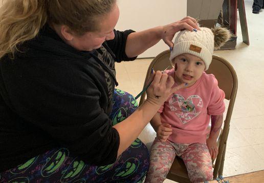Giada Cassone, 2, of Berlin, gets Spiderman painted on her cheek during the festival.