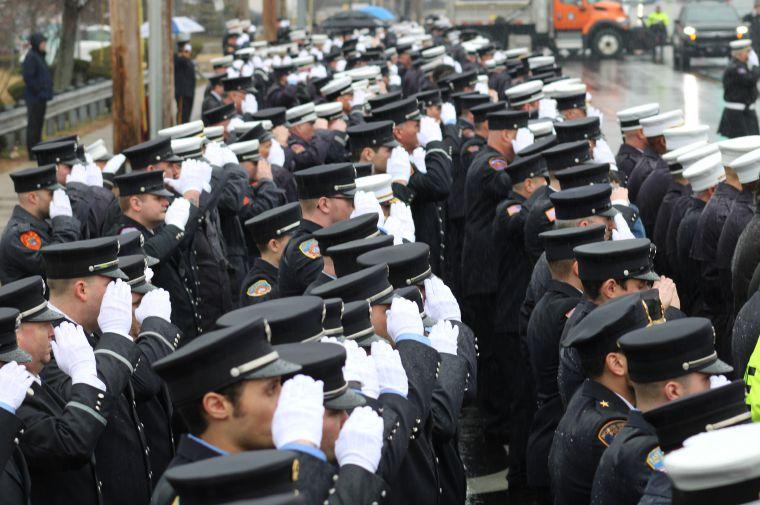 Firefighters from around the state paid their respects to fallen North Haven firefighter Matthias Wirtz at the North Haven Funeral Home on Monday.