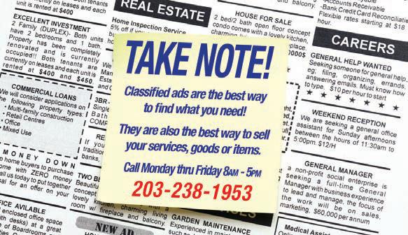 GO MOBILE /Classifieds Interested in Classified Advertising? Call Us. 203-238-1953