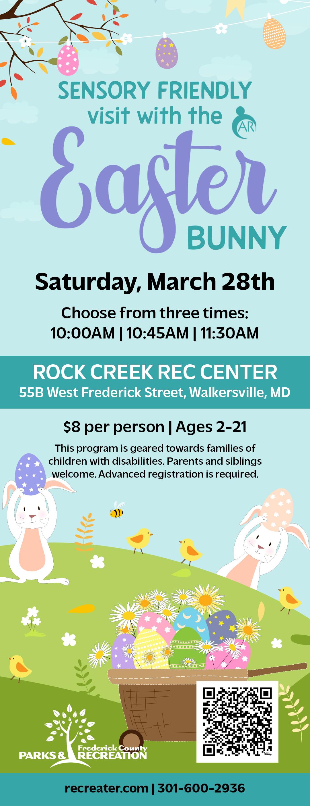 Essential Eligibility Criteria: Program Level 1. Join us for a hoppy time with a welcoming and inclusive celebration designed for individuals of all abilities! Families can enjoy a relaxed one on one visit with the Easter Bunny with lower noise, no long lines and gentle lighting. While you wait for the Easter Bunny, participate in crafts, games and an egg hunt! This program is geared towards families of children with disabilities. Parents and siblings welcome. Attendees ages 2-21 must register for the program to attend. If a participant needs personal care, a caregiver must remain onsite.