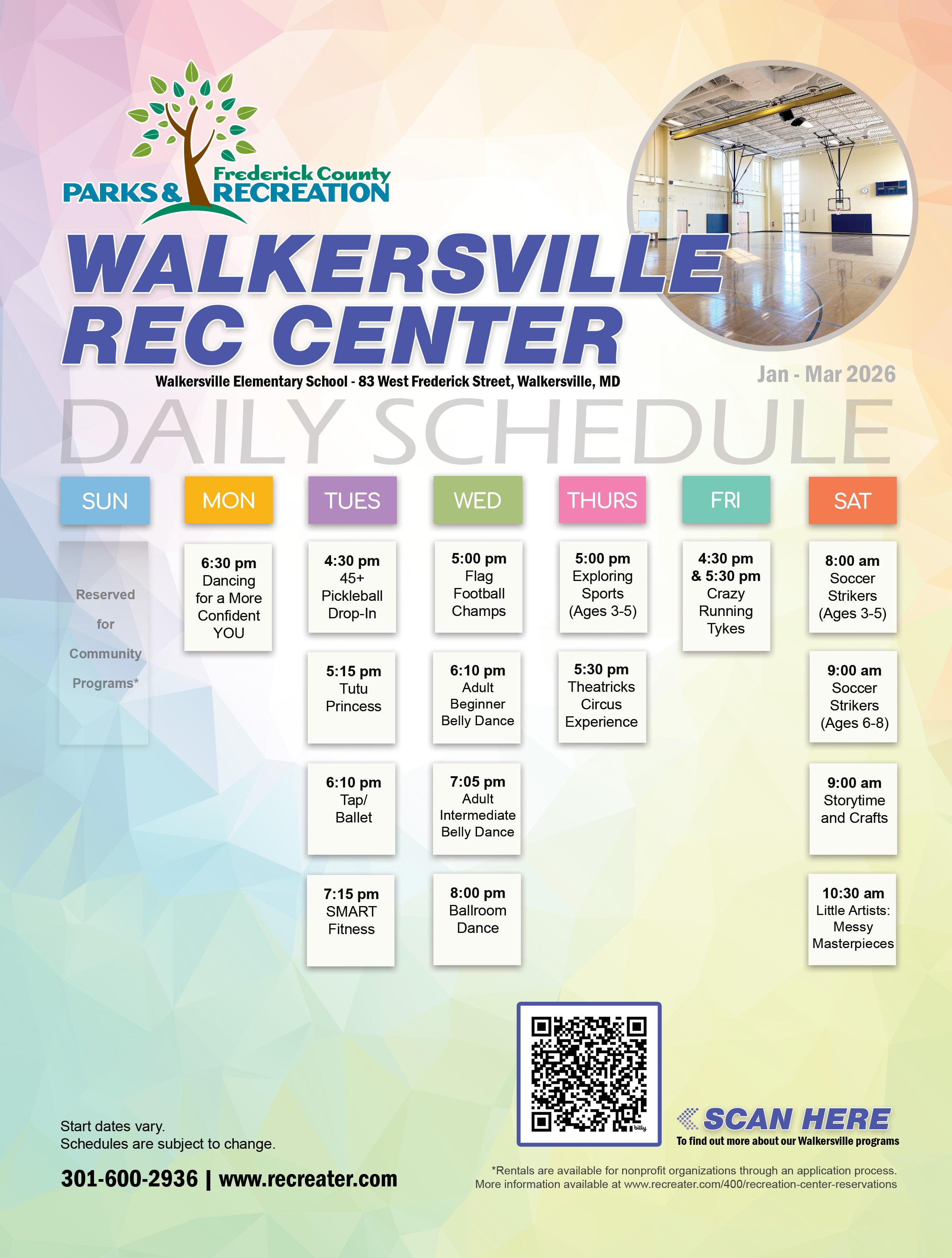 WALKERSVILLE REC CENTER in Walkersville Elementary 83 West Frederick Street Walkersville, MD 21793