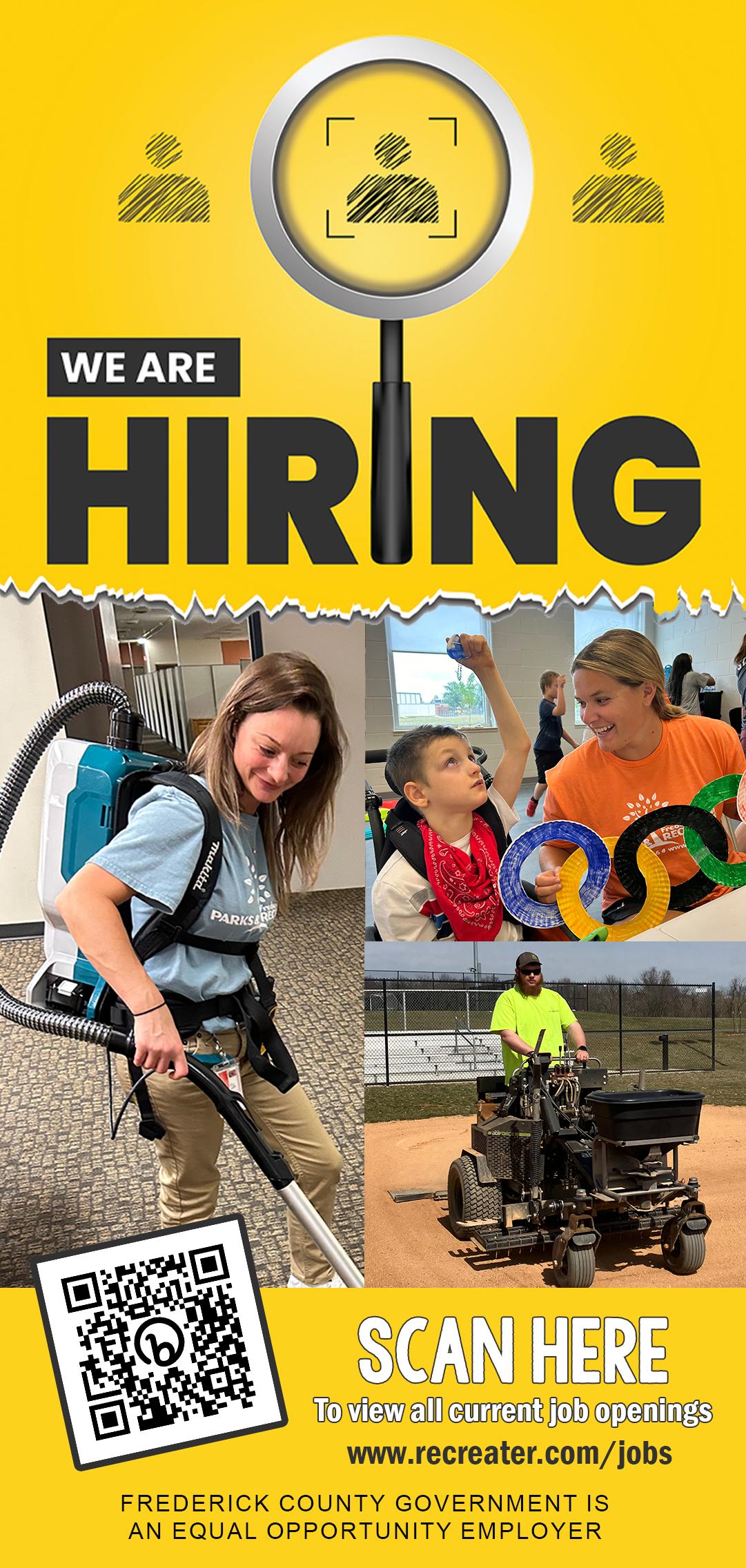 Participants consent to Frederick County, Maryland’s use of the participant’s image and likeness as shown in any photographs, videotapes, motion picture film, or electronic images, and any audio recordings made of the participant’s voice in whatever way the County desires, including television, print and Internet websites. Furthermore, you consent that such photographs, films, recordings, electronic images shall be the sole property of Frederick County, Maryland. Participants have the option to submit a non-consent for the use of images of yourself or your child during online registration or by calling 301-600-2936.