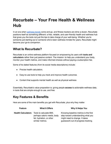 Recurbate is your go to health wellness hub, offering a suite of precise and easy-to-use tools and calculators that empower you to take charge of your health.