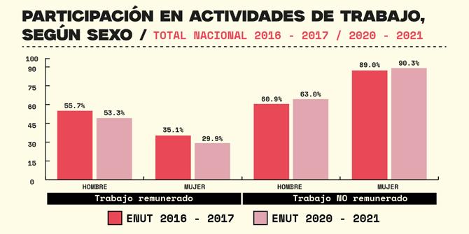 Las mujeres dedican, en promedio, una jornada de trabajo adicional de 7 horas 44 minutos diarias a estas actividades, mientras que los hombres tan sólo 3 horas.