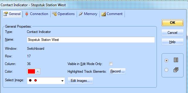We zien dan het onderstaande scherm, Tikken het tabje “General” aan en typen bij het invulveld “Name” de naam in die wij aan deze contactindicator willen geven, in dit geval “Stopstuk Station West”.