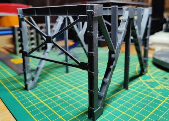 Maar de brug bestaat niet alleen uit de spanten. Om het brugdek te ondersteunen, zitten er tussen de spanten ook nog de nodige dwarsdragers en windverbanden. Ook deze moeten worden nagemaakt. Het vervelende is dat er geen technische tekeningen zijn opgenomen van de windverbanden. Alleen van de dwarsdragers.