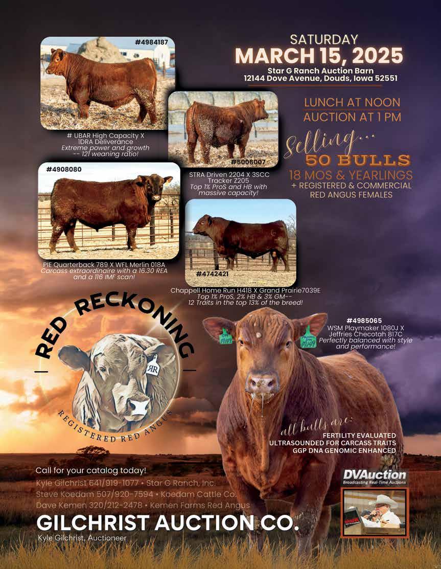 Steve & Tracey Koester Steele, ND (701) 400-1611 cell KoesterRedAngus.com koesterredangus@gmail.com Request a catalog: Leland Red Angus Friday, March 14, 2025