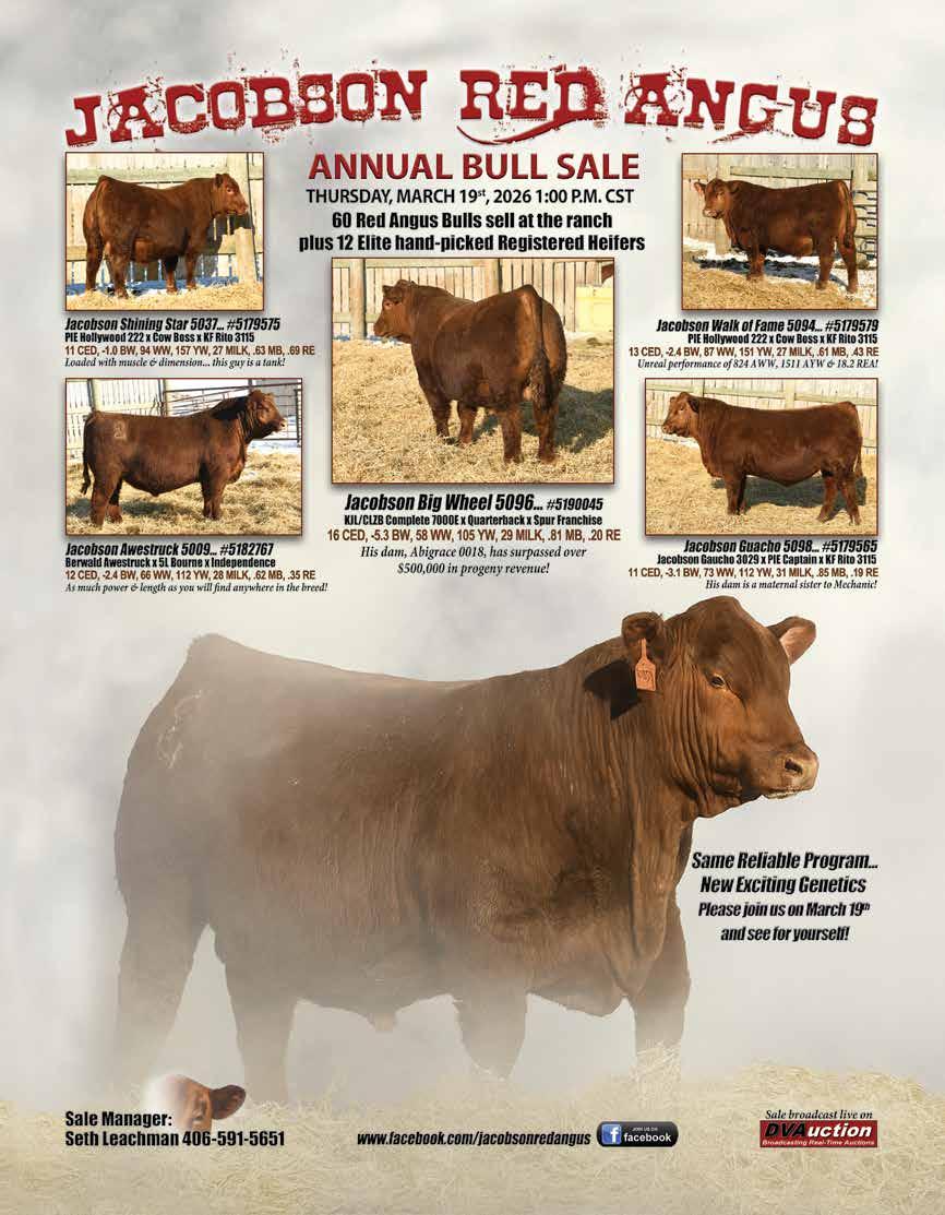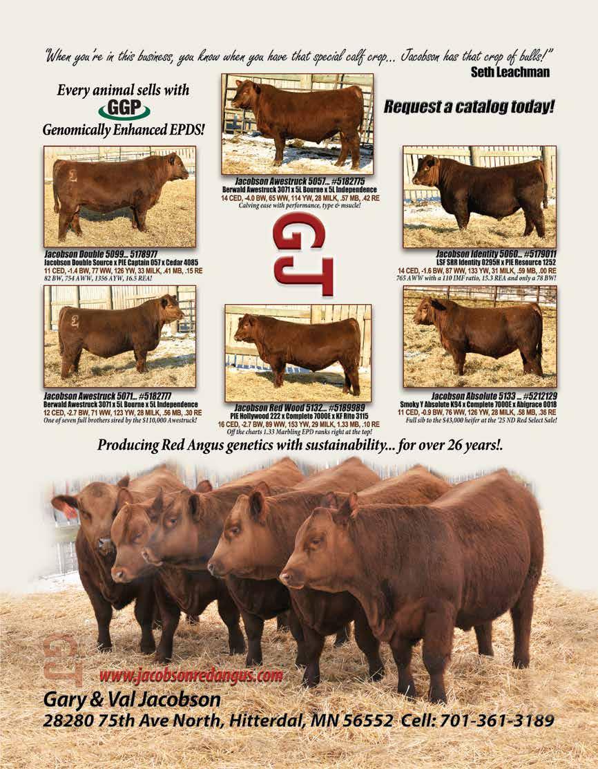 Rhodes Red Angus Ranch, Faulkton, SD 22 Gill Red Angus, Timber Lake, SD 24 Kuhn’s Red Angus and Huber EY Red Angus, Napoleon Livestock, Napoleon, ND