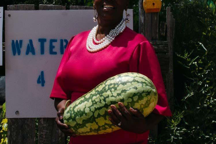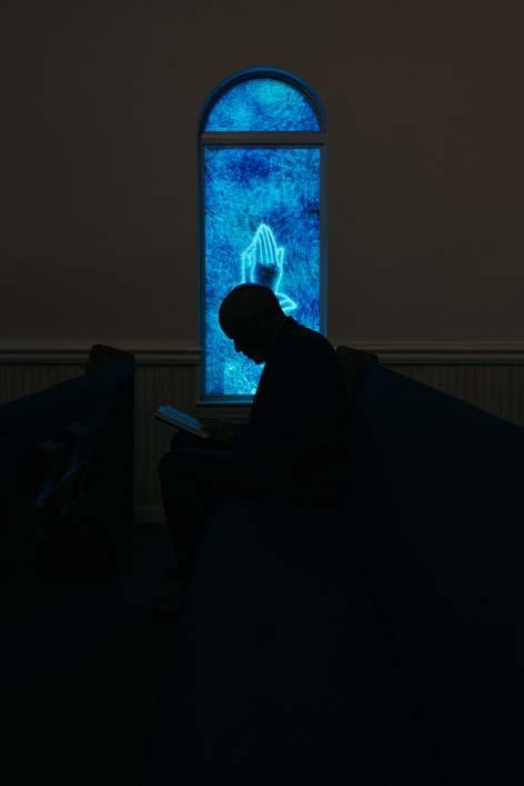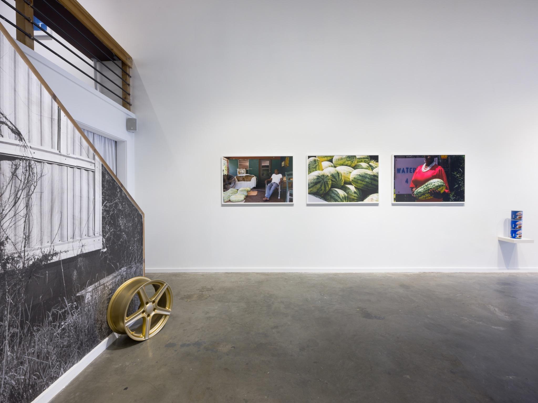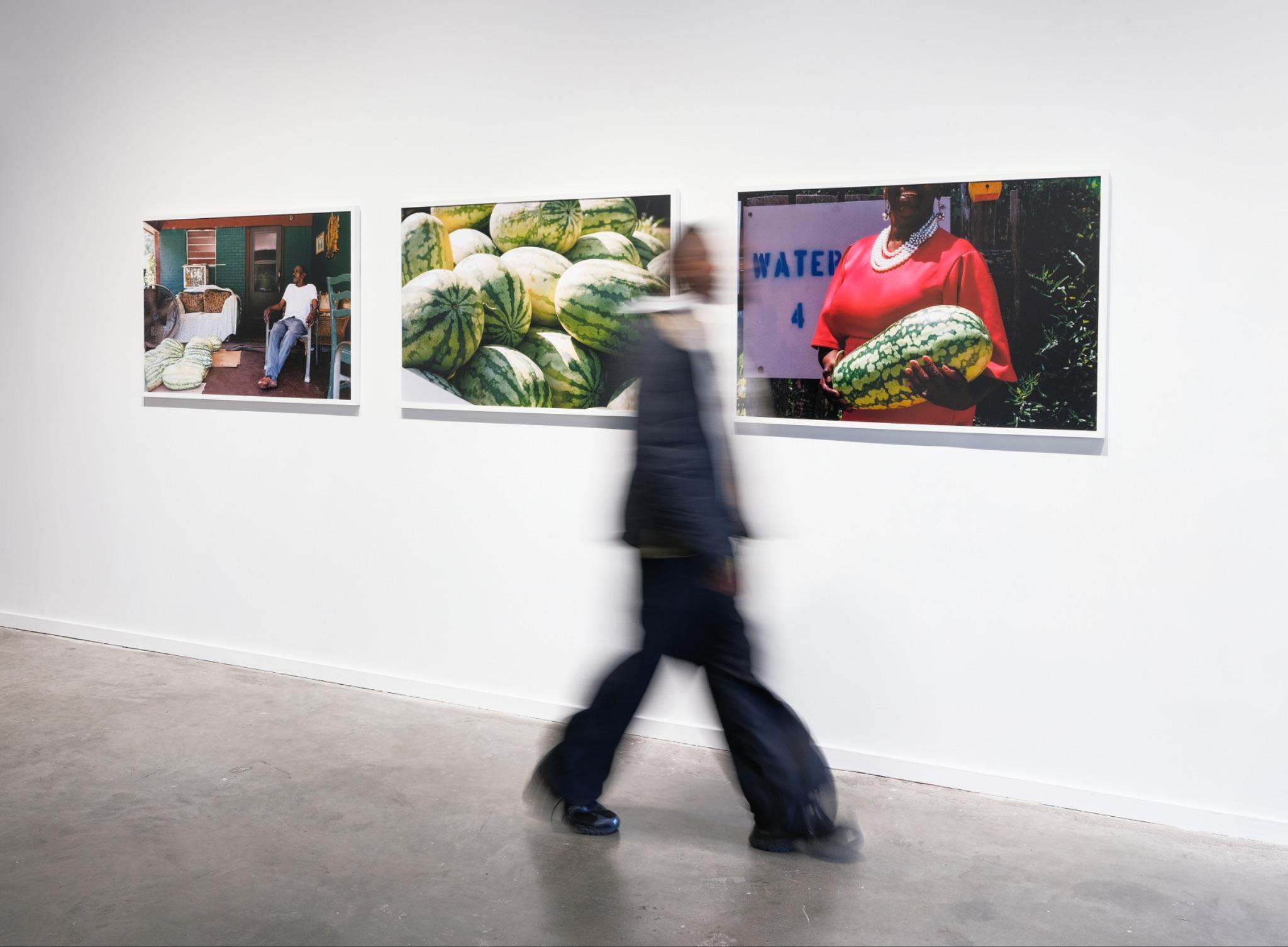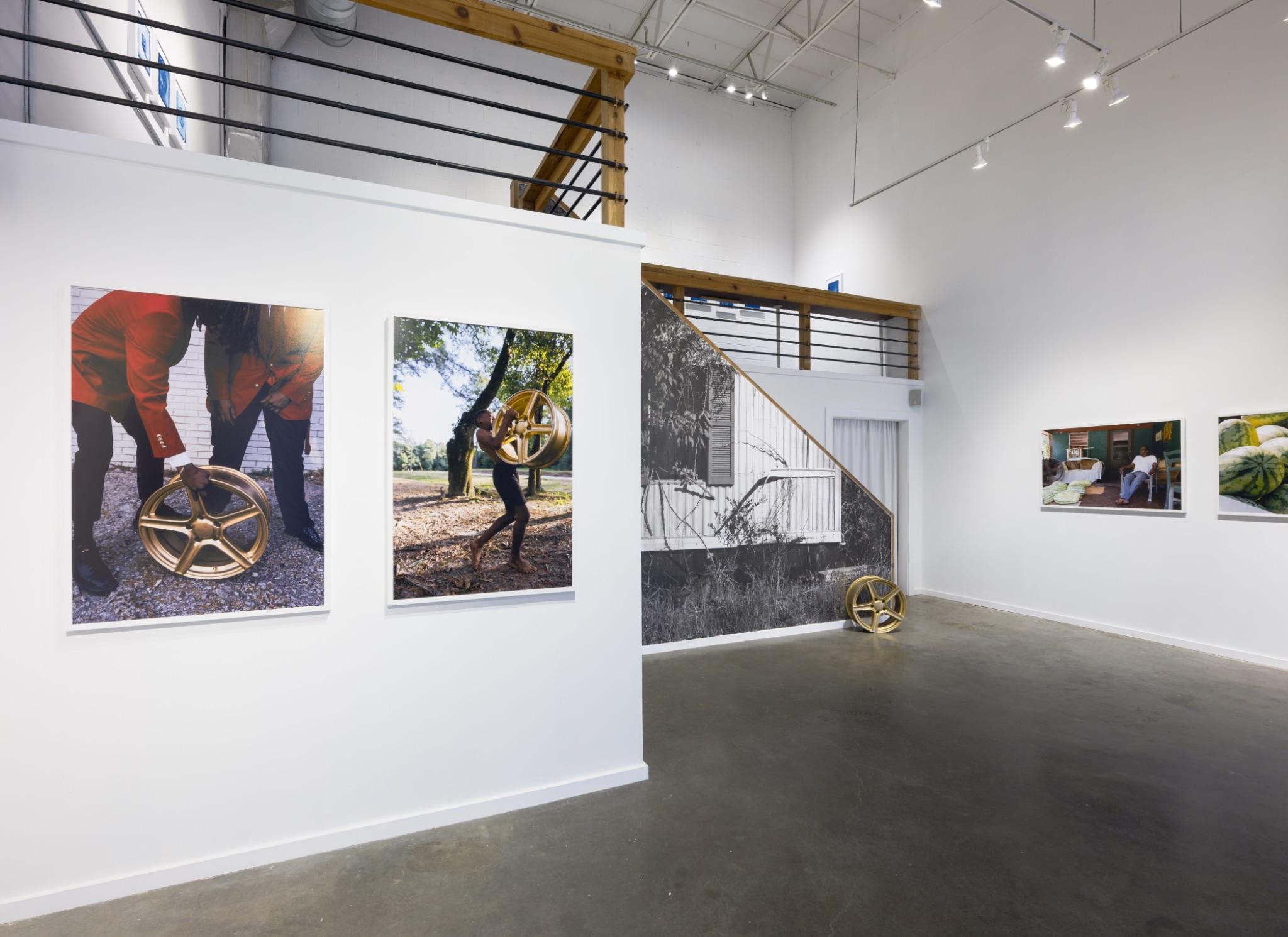 “In Dirt Road Baby, Bryant returns to his hometown of Jackson, Alabama—a small community in proximity to Mobile, Alabama, home to fewer than 5,000 people. His images trace the familiar markers of Black Southern culture: the church as a sanctuary and gathering place, watermelon as both symbol and sustenance, and customized cars gleaming with chrome or gold rims as expressions of pride, individuality, and craftsmanship. In one of the series’ most evocative moments, Bryant turns his camera upward toward a basketball goal. The sunlight catches the rim, transforming it into a radiant halo. This image gestures toward the boundless aspirations of his community—dreams not confined to sport or stardom, but animated by an enduring hope, an imaginative light that persists despite history’s weight.