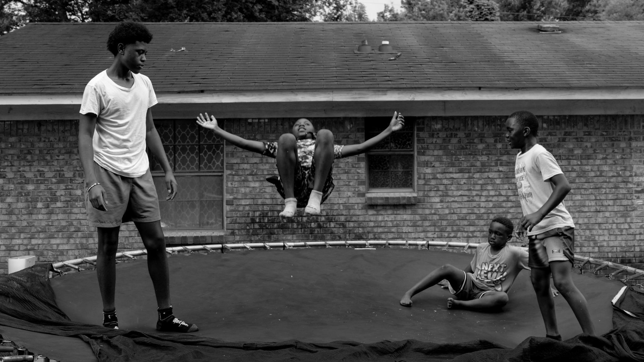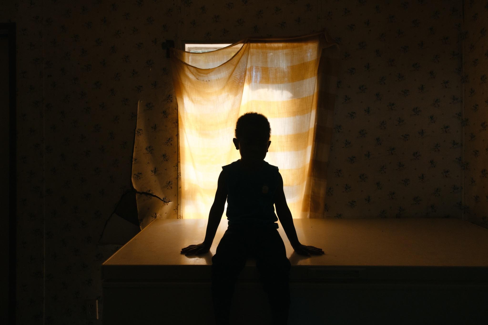 Bryant’s Dirt Road Baby series unfolds like a visual poem—one that weaves together memory, geography, and the poetics of everyday Southern Black life. In a video compilation scene, a horizontal striped sheer blanket hangs as a window curtain, paired with floral wallpaper that gestures toward the American flag. A young boy crawls across a surface and pulls back the curtain, looking out toward the world beyond. The sequence evokes small-town America—rural landscapes, red clay roads, and the familiar imagery of the South. Yet Bryant complicates this romanticized vision, reminding viewers that these dirt roads are not symbols of nostalgia alone; they are living pathways, bearing the weight and rhythm of everyday movement, migration, and belonging.