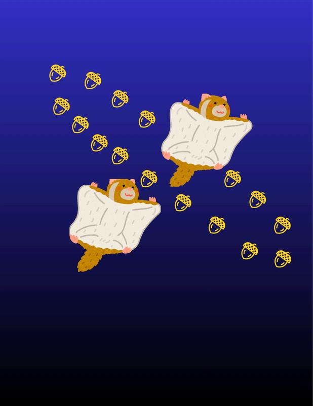 This space design utilizes a wide diagonal composition to create a sense of vastness and verticality. By placing the flying squirrel in the upper-left corner and the detailed tree in the lower-right, I have used negative space to emphasize the distance of the squirrel's glide. The warm, earthy gradient background provides a soft atmosphere that connects the two subjects, illustrating the relationship between the forest canopy and the open sky
