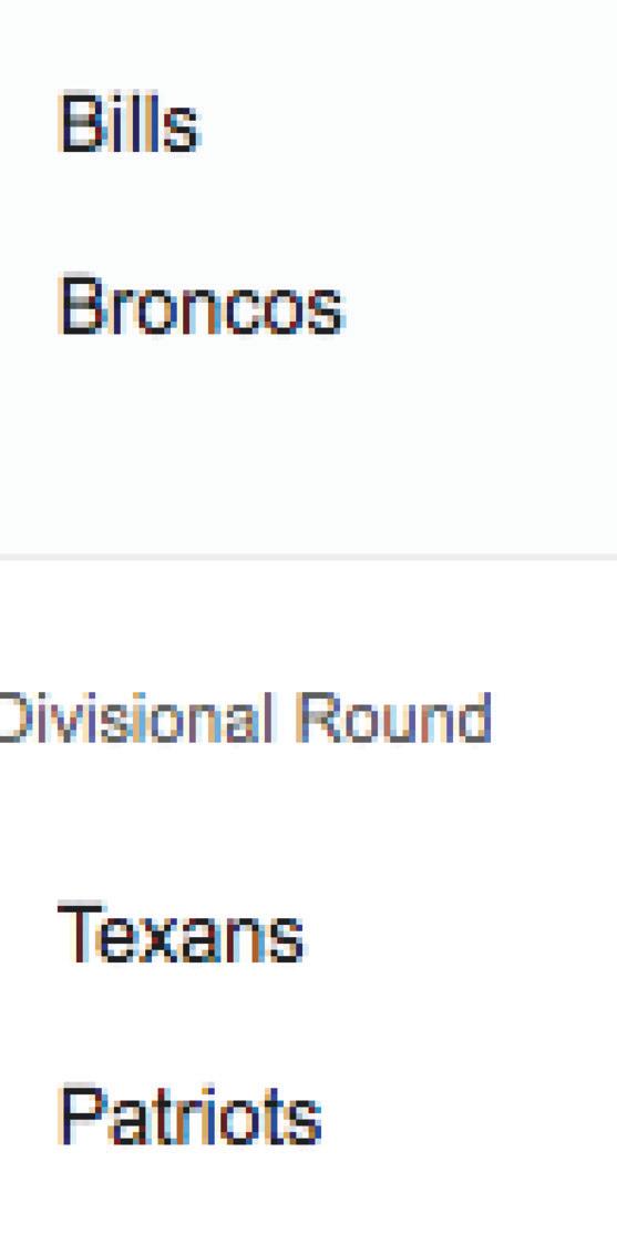 Teams TBA (5) NFL Football Divisional Round: