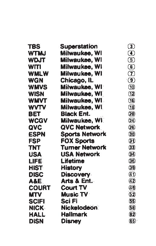 (24) Bill Michaels Wisconsin Sports Weekly (34) Chicago Fire (41) Bigfoot Took Her (42) Storage Wars (56) Friends (39) The UnXplained