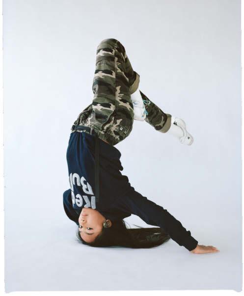 the frst injury of her career. “I cried a lot in those frst two weeks.” What she didn’t do was take a break. Instead, Garnbret trained her upper body and practised climbing using only one of her feet, or neither of them. “I had to learn how to trust my body again.”