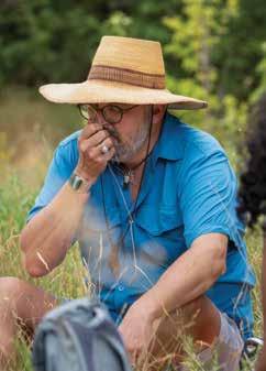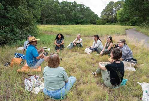 Top right: forest therapy guide Chris Newton, Below: Writing in the Garden class