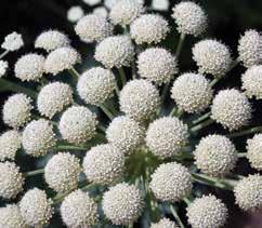 This short-lived perennial or biennial member of the carrot family comes from Türkiye. During its first season, it forms a rosette of feathery sage green to blue foliage with white stems. The blooms, which emerge the second year on robust stalks, are moon-like half spheres of cream-colored flowers, blushed with pink. The flowers are prized by a diverse array of pollinators, and they produce seed prolifically. Leaving the flower stems in place in the fall provides a beautiful, ivory white, sculptural form during winter. Overwintering foliage is evergreen with purple and pink hues.