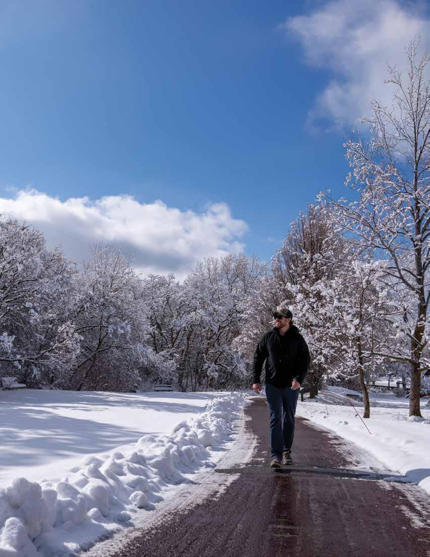 Guests crunch the snow underfoot in the Natural Area Oak Tunnel.