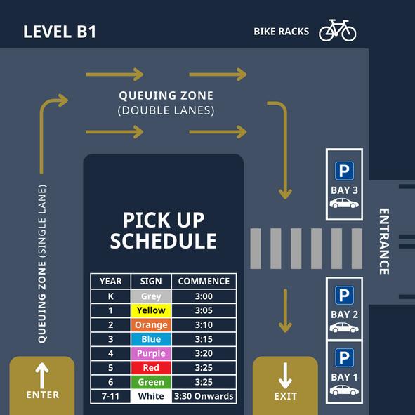 The carpark entrance will reopen for pick-up at 2.55pm, with staggered pick-up times by year levels.