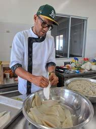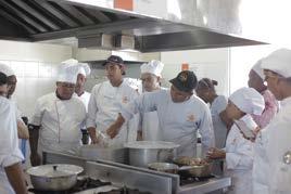 Inician las actividades conjuntas en dondesecompartenconocimientosyse realizan los procesos de elaboración de las propuestas de preparaciones previamente diseñadas para la muestra gastronómica, implementando los productos locales y las técnicas de manejo cotidiano, en versiones de platos con pequeñas proporciones que tienen como fin exaltar la cocina identitariadelaisla.