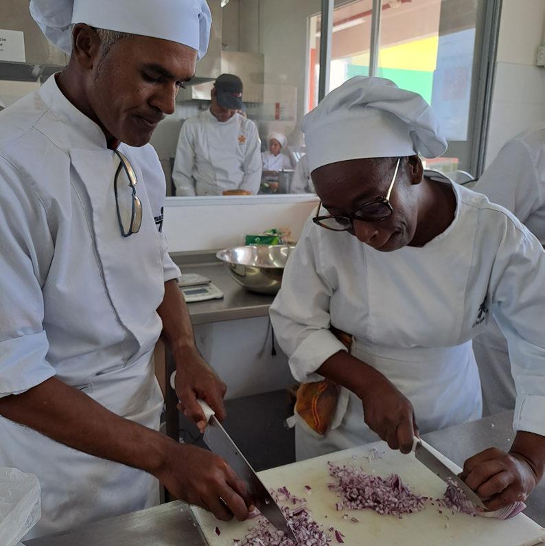 Se sofríe en aceite de coco la cebolla, el ajo, la zanahoria y el pimentón cortados en cubos, luego se agrega la leche de coco, el fondo de pescado y la sal. Se agrega el bonito previamente cocido y desmenuzado, al finalizar se incorpora el basket pepper finamente picado.