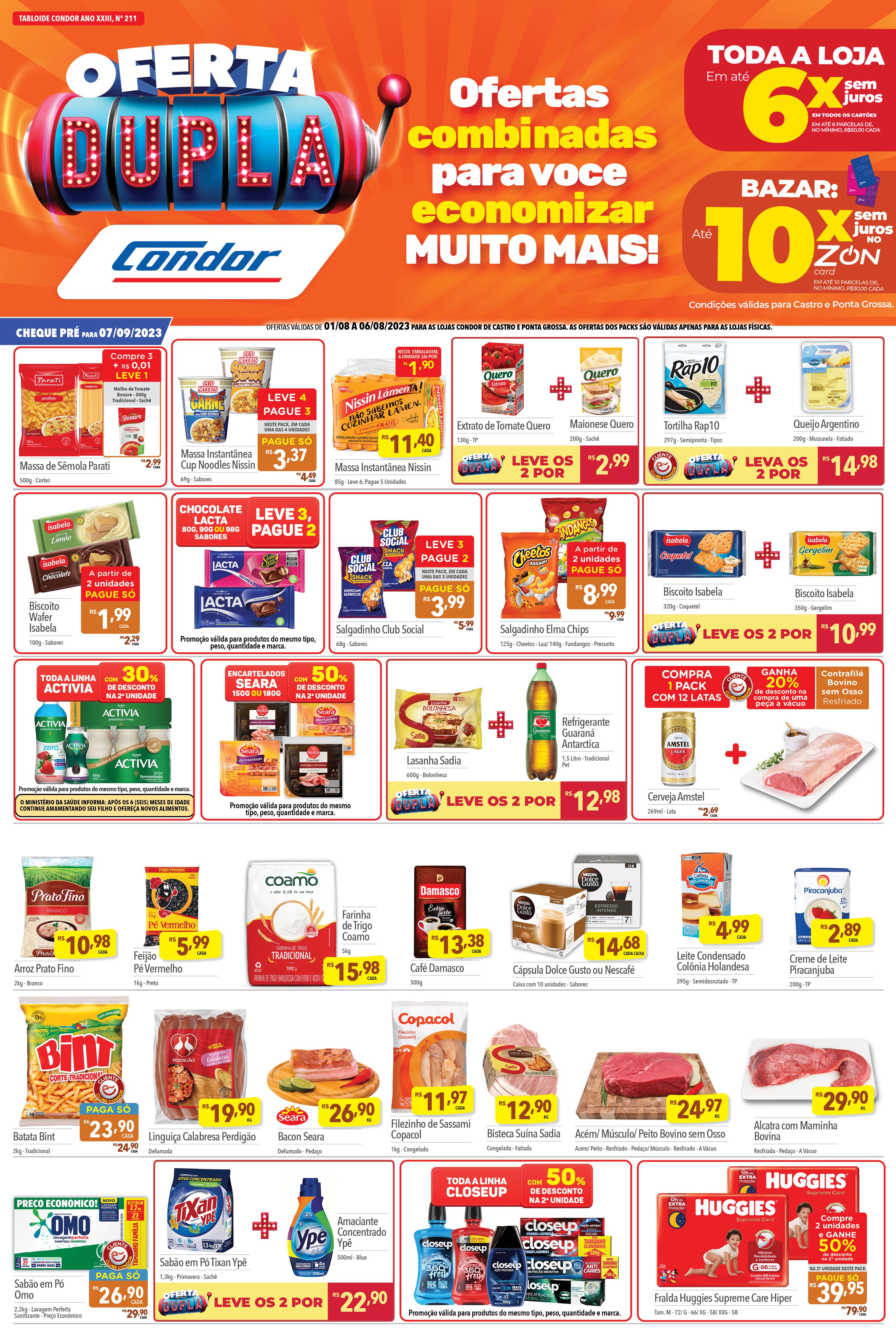 Oferta Dupla Condor. Válido de 01.08 a 06.08.23 pg e castro