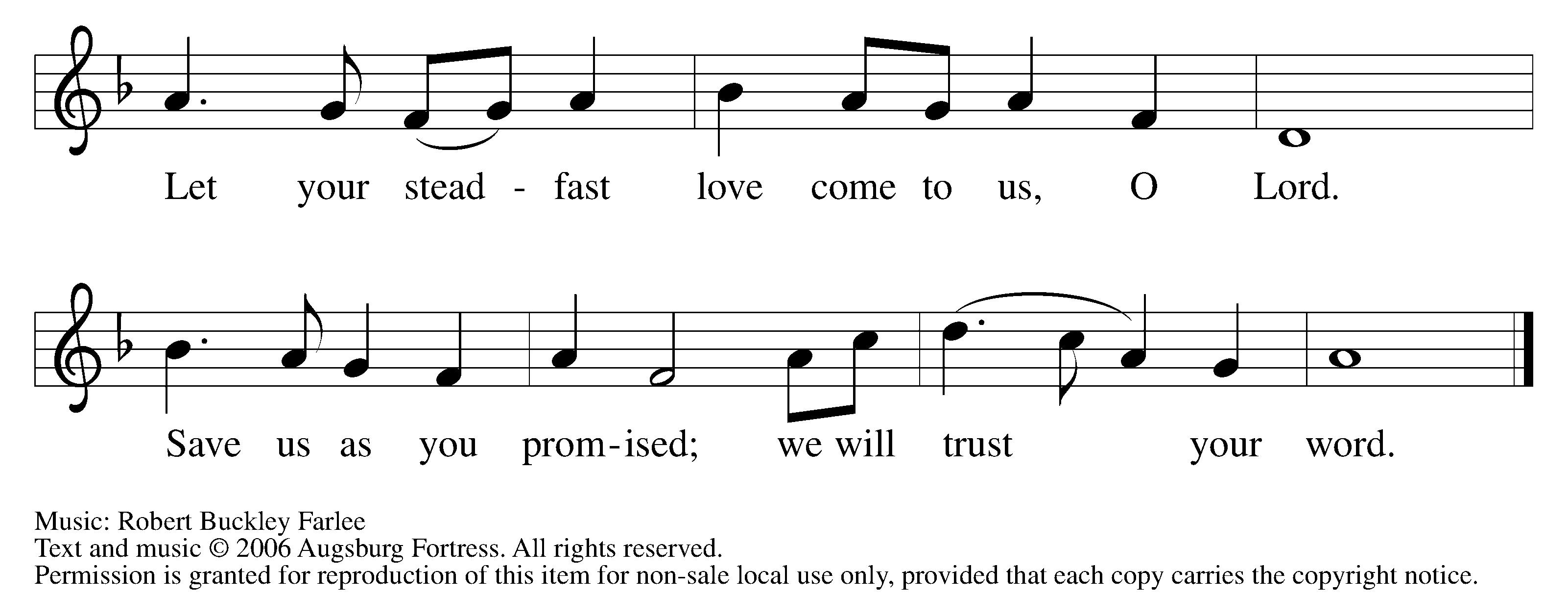 Each portion of the prayers concludes: Merciful God, | receive our prayer. At the conclusion of the prayers: Amen Sustained by God’s abundant mercy, let us pray for the church, the world, and all of creation. A brief silence.