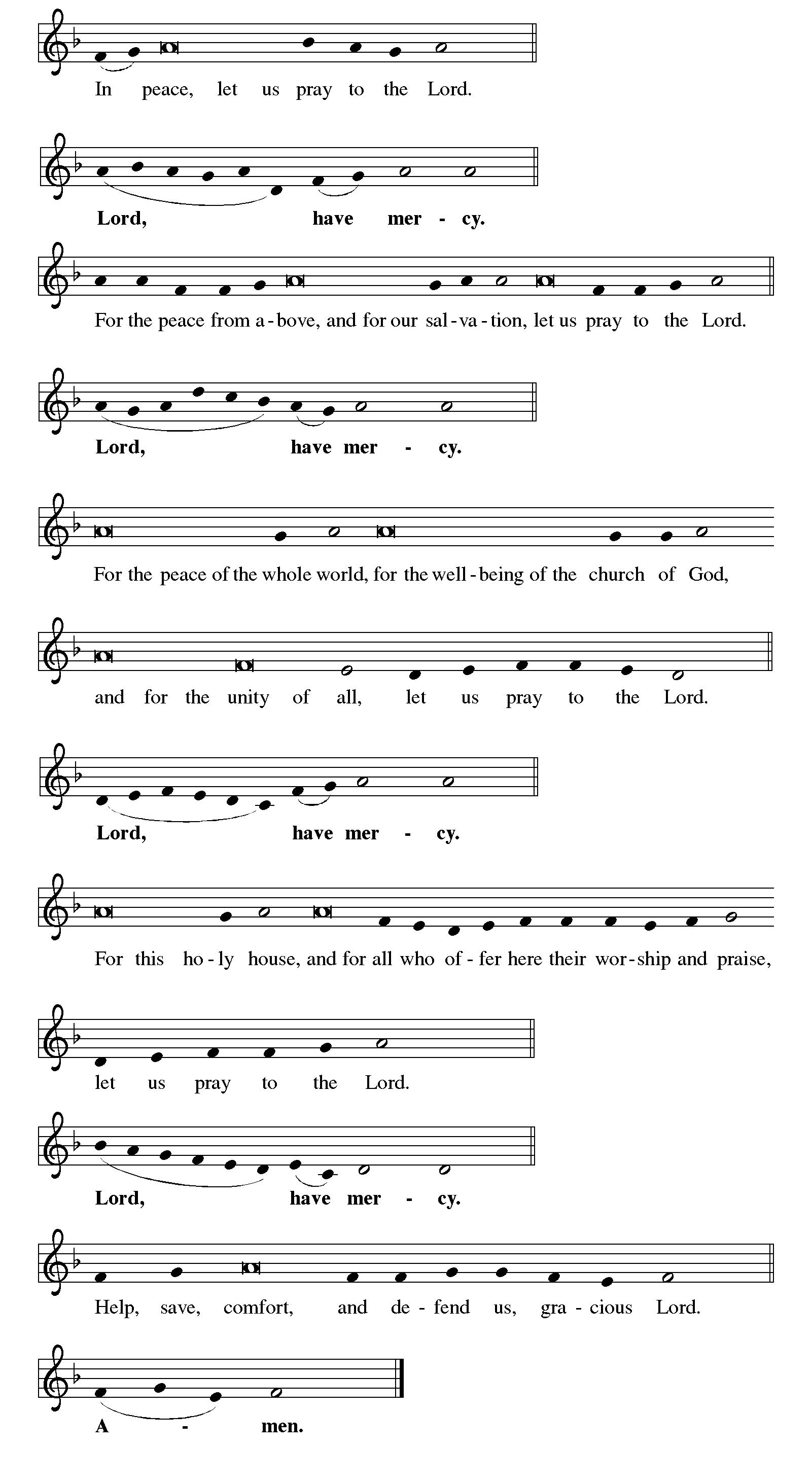 Each portion of the prayers concludes: Hear us, O God. | Your mercy is great. At the conclusion of the prayers: Amen