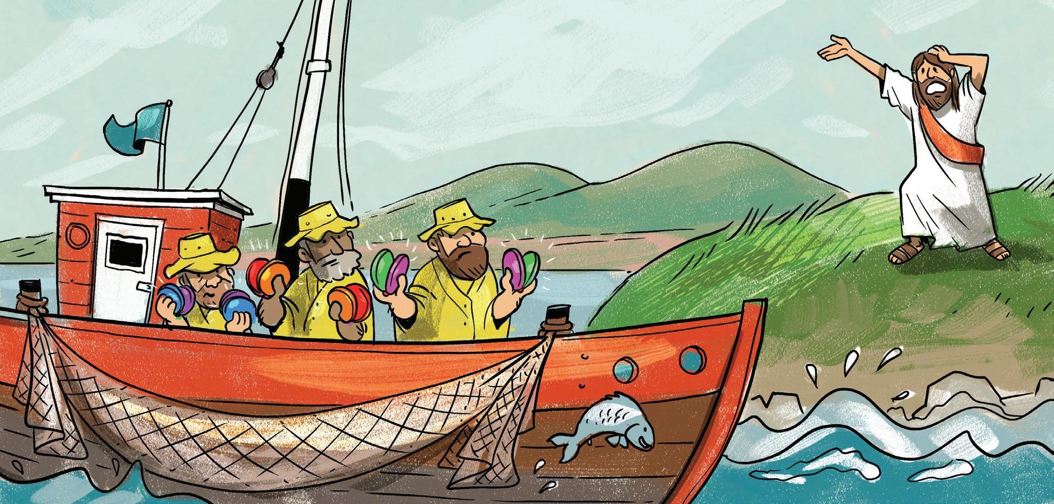 let’s try it again… CAST THE NETS to the right of the boat…not castanets!”