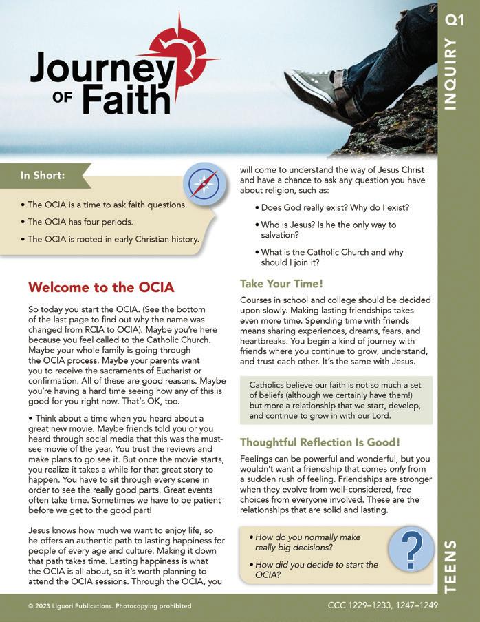 This new book is the latest addition to Journey of Faith — the best-selling OCIA program. Each lesson in the program includes a journaling prompt designed to reflect spiritual truths, make personal connections between doctrine and daily life, and encourage ongoing conversation.