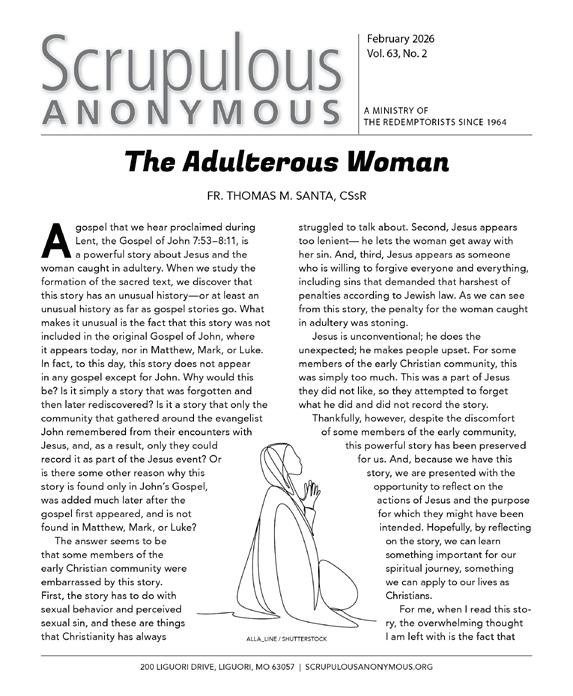 Scrupulous Anonymous Newsletter: The monthly newsletter provides a ray of hope to help deal with this affliction. This is a free service provided by the Redemptorists and Liguori Publications. Subscribe at ScrupulousAnonymous.org.