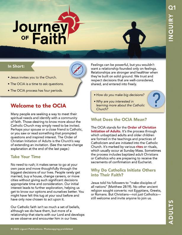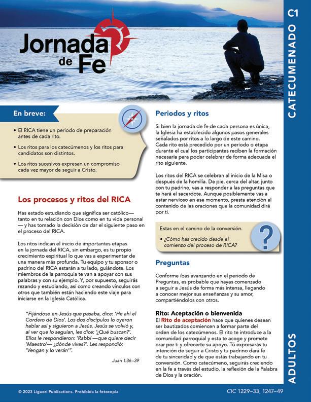 “The materials look great. I appreciate your easy-to-read lessons and wrap-around Leader Guides that show where to introduce key points and discussion starters. The flexible format lets leaders rearrange the topics to fit our process Journey of Faith/Jornada de fe makes the Christian Initiation process look so easy!”