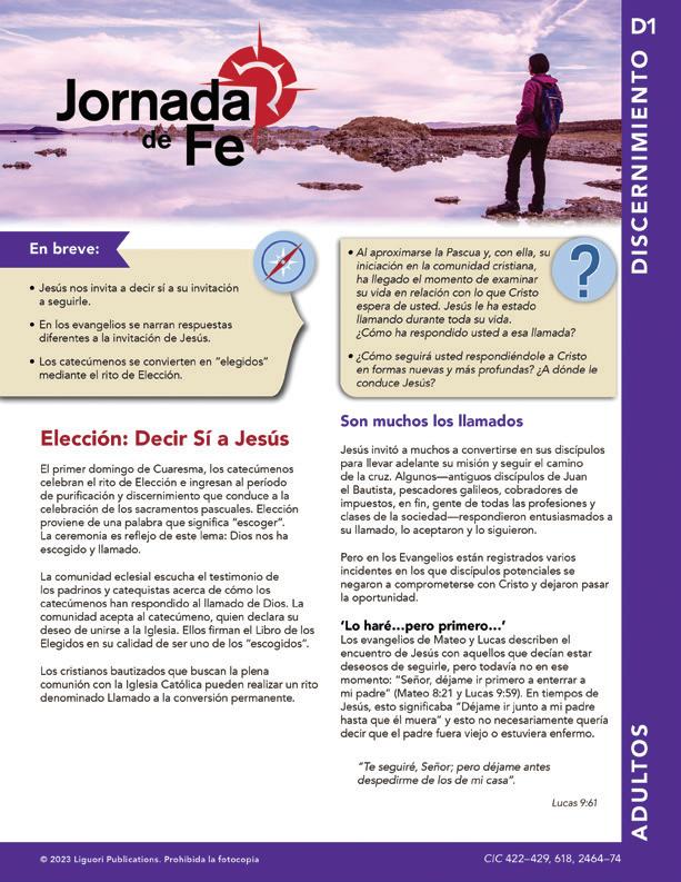 If your parish is fully digital, you may prefer the Jornada de Fe lesson in their online format, which utilizes digital flipbooks to go through the program. An annual subscription includes all four stages of Christian initiation. Visit subscriptions.liguori.org for more information. Visit Subscriptions.Liguori.org for pricing on digital subscriptions.