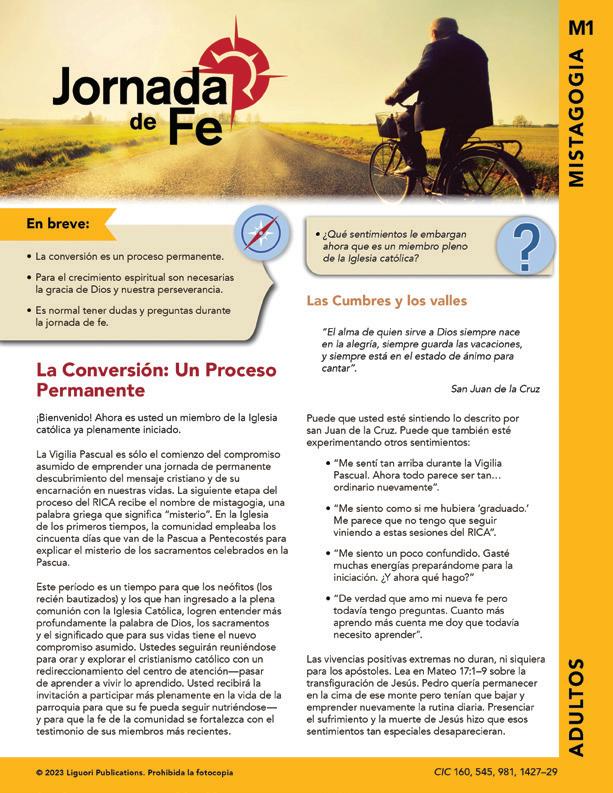 Using the engaging pastoral style of the Redemptorists, the timetested Jornada de Fe program welcomes people of all backgrounds to the Catholic faith, meeting every individual wherever they may be in their own faith journey. The program provides a solid catechetical foundation, while embracing a variety of learning styles by including discussion questions, private journaling, and other activities. Separate programs are available for adults, teens, and children, to speak to each audience in a voice they can relate to.