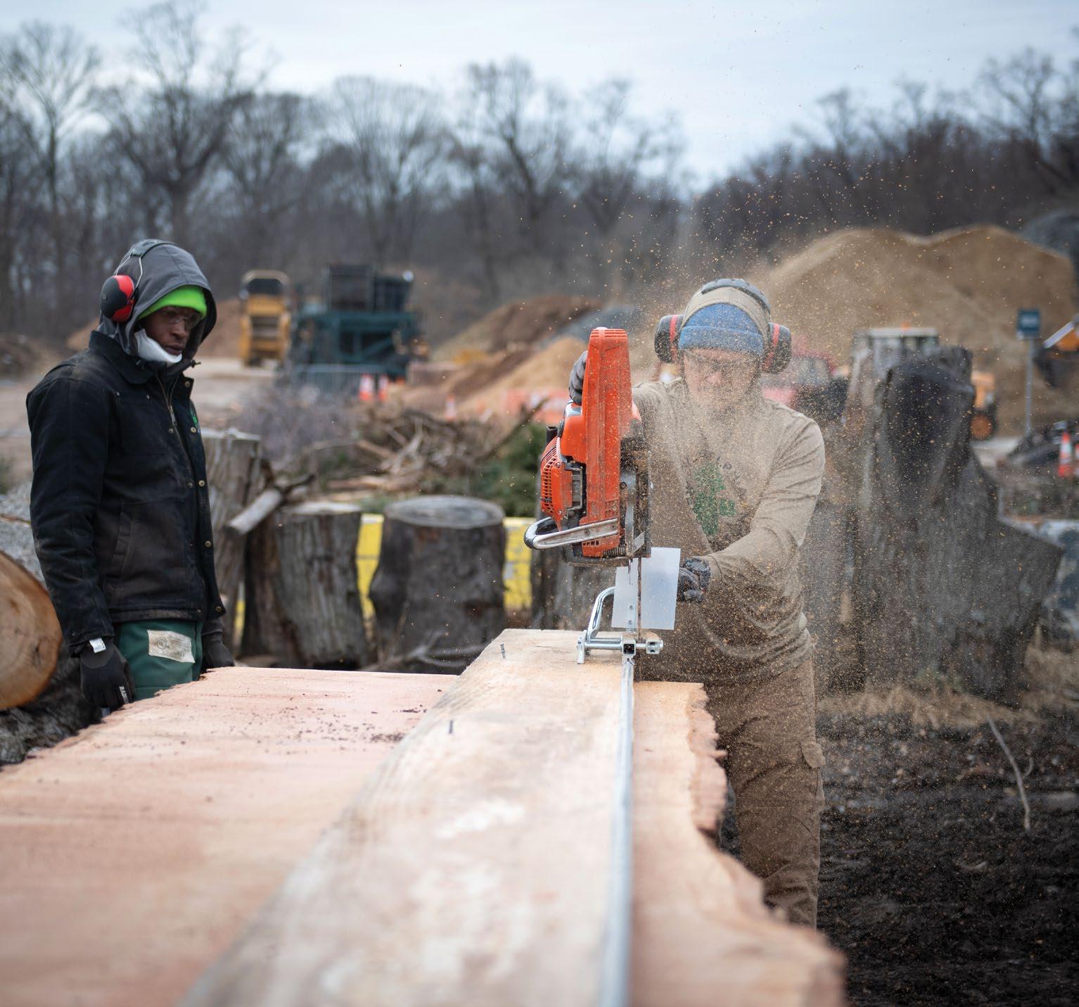 At the heart of the hub are Carlos Alvarez, director of social enterprise operations, and sawmill operations manager Freddy Ortiz. Together, they have graduated four trainees and taught hundreds of Philadelphia schoolchildren about the social and environmental benefits of saving, using and repurposing fallen trees, while spotlighting best practices for safety and proper tree care.