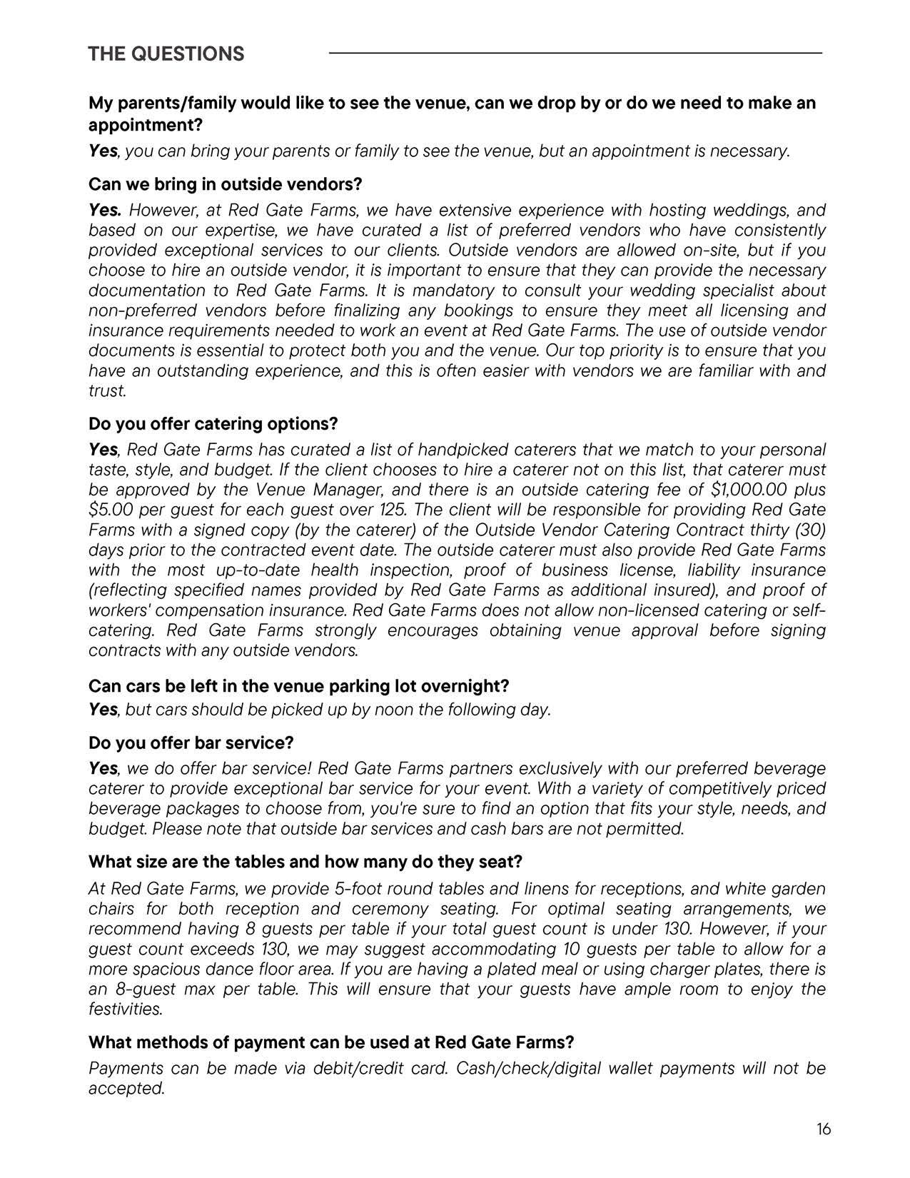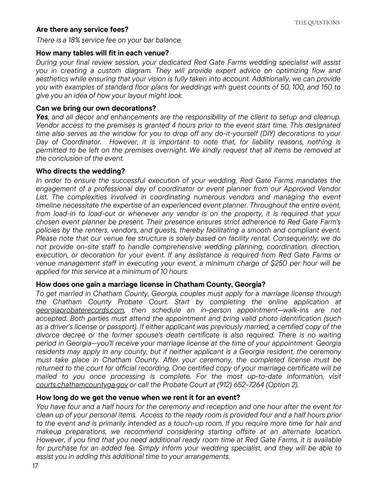 Red Gate Farms - Wedding Welcome Guide