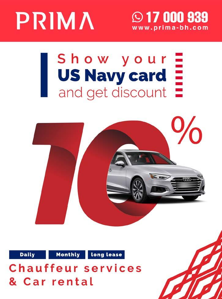 The appearance of advertising in this newspaper, including inserts or supplements, does not constitute endorsement by the DoD, the U.S. Navy or Marine Corps, or the NSA Bahrain Commanding Officer for the products and services advertised.