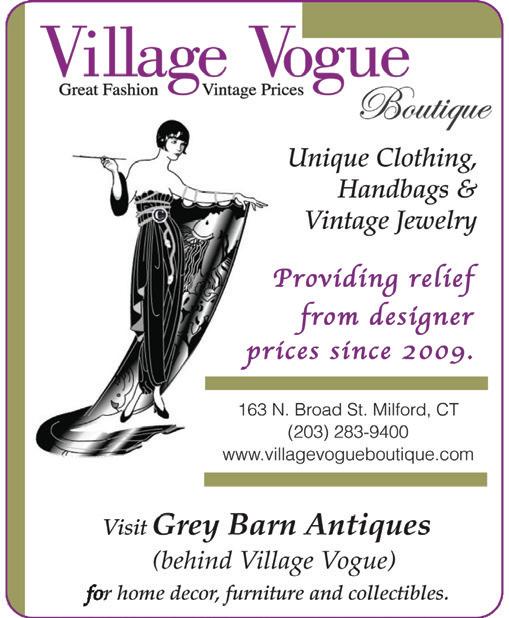 where is it? Know the answer to this issue’s Where is It? Send us your answer at: suzanne@milfordliving.com Want to win a Milford Living Subscription? Send your answer (along with your name and address) to: suzanne@milfordliving.com Two lucky winners will be chosen at random. DULIN AUTOMOTIVE, INC. M-F: 8am - 5:30pm Sat: Call for Availabilities Sun: Closed FAIR PRICING • WE RECYCLE • HYBRID TECHNICIANS We have been in Devon for 30 years! We believed in Devon when no one did! CELEBRATING OUR 30TH YEAR 79 Bridgeport Ave., Milford 203.877.8114 | DulinAuto.com Dulin Automotive is a full service auto repair shop specializing in new car preventive maintenance. We have over 30 years of experience in new car factory training. Owner/Operator Gary Dulin has over 40 years of professional service in the automotive industry. Our ASE certified technicians use the latest computer diagnostic tools to assess and maintain your vehicle in our climate controlled facility. And to make your visit more convenient, we offer towing services and an after-hours key-drop box. Dulin Collision Cen t e r Best Automotive Collision and Refinishing Center • Refinishing • Body Work • Scratch & Dent Repair • Paintless Dent Removal • Automotive Glass "Quality is not an act, it is a habit." 11 Warfield St, Milford | 203.283.9495 DulinCollisionCenter.com M-F | 8am - 5:00pm Answer to last issue’s quiz: The mural featured in the autumn issue can be found on the wall of 23 River Street facing the park area and side exit of Cafe Atlantique.