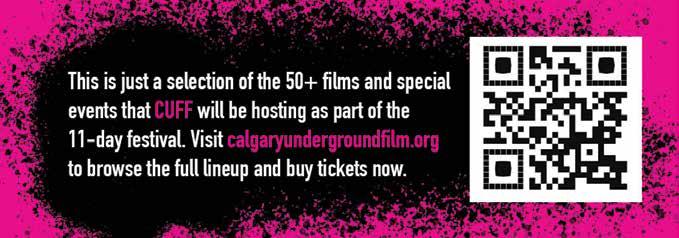 Back for its 21st year, the Calgary Underground Film Festival returns from April 18 to 28 with a full lineup of films and events. Get a festival pass to catch some of the best international independent films out there. Visit calgaryundergroundfilm. org for this year’s film lineup and tickets and read more on page 22.