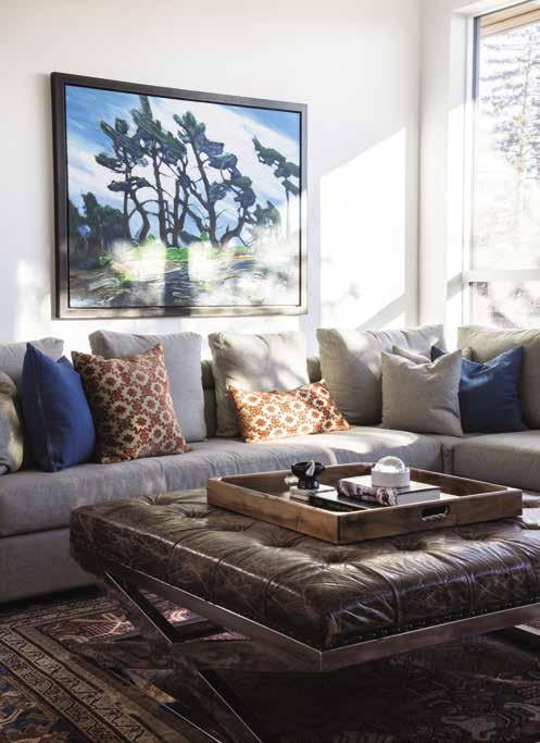 feeling, but they are a young family with kids … and so one of my challenges was to take that envelope and create warmth and intimacy.” The living room takes full advantage of the scenic view without sacrificing privacy, and Sotropa softened each room’s 10-foot white walls with carefully considered, earth-toned elements such as natural walnut wood.