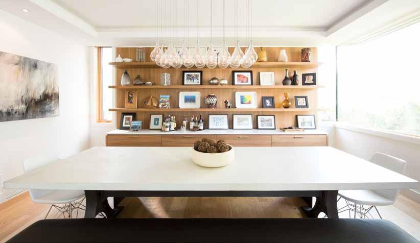 Laminated-white-oak-andchrome table in the den and white-leather chairs from Domicile contract sales, 403-262-9780
